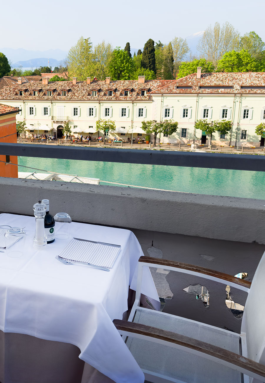 Il nome “All’Orologio” deriva dalla presenza dell’orologio sul palazzo accanto, un simbolo di storia e tradizione per la città di Peschiera del Garda.